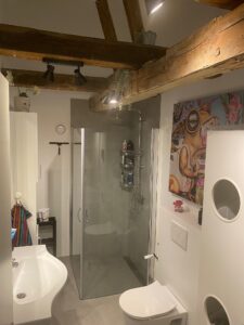 Ejendommen er beliggende i roligt område tæt ved forretninger og vand. Byens gågader er lige nede for døren